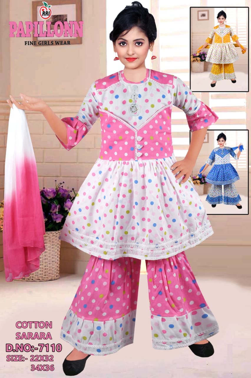Girls Polka Dot Printed Kurta, Sarara & Dupatta set of 6 pieces