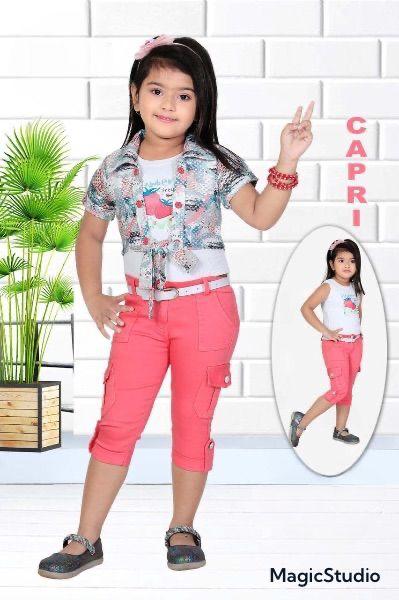 Girls Pink Capri Set with Printed Shrug & Belt set of 6 pieces