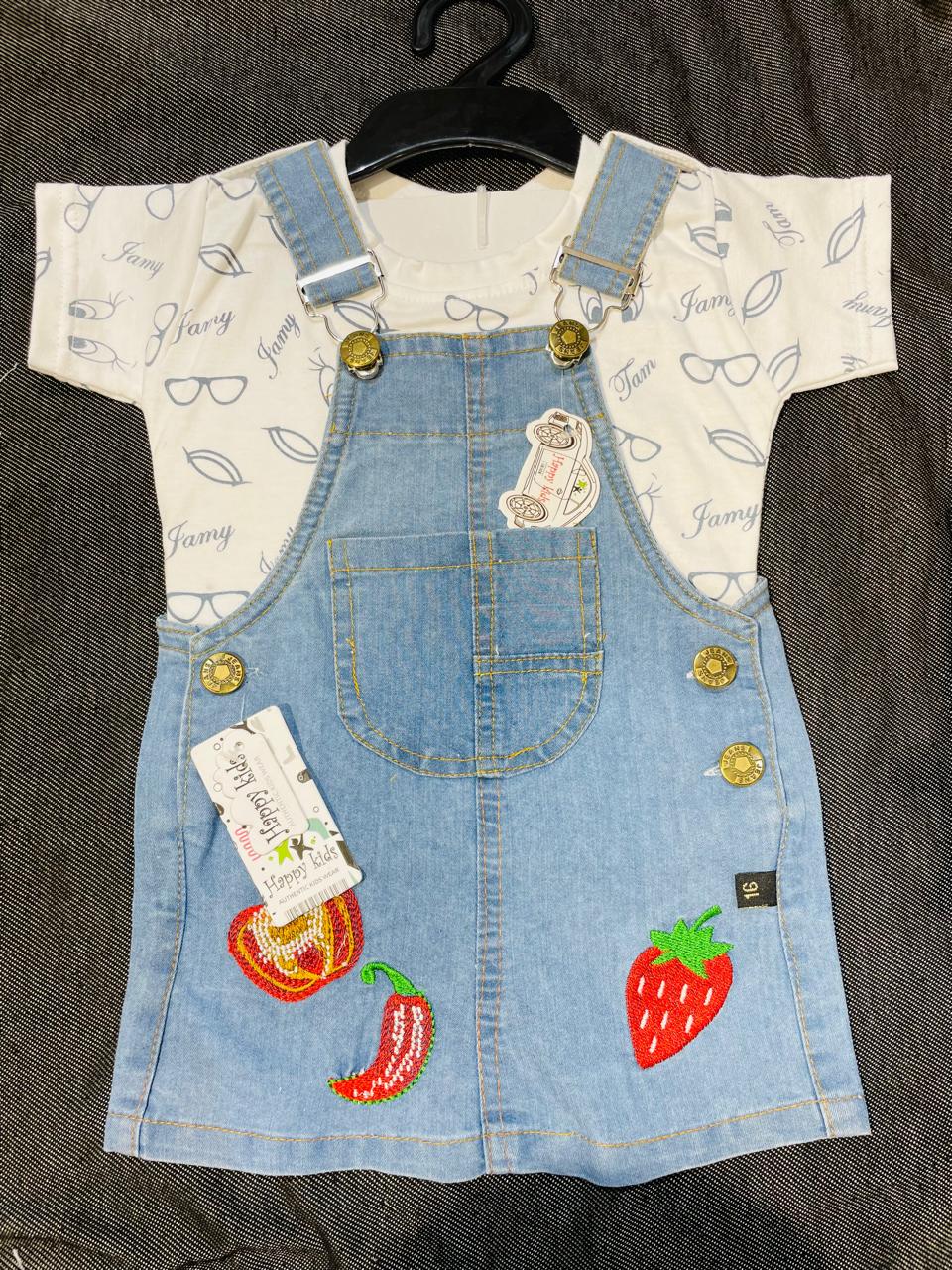 Happy Kids Baby Girls Dungaree Dress Set of 6 piece[3 COLOR]