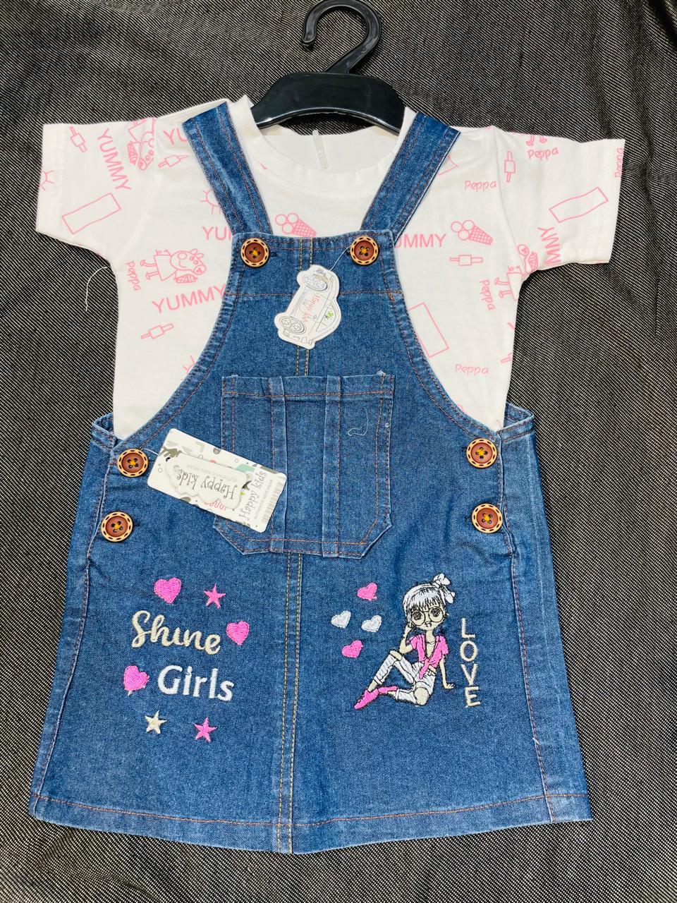 Shine Girls Denim Dungaree Set of 6 pieces[3 COLOR]