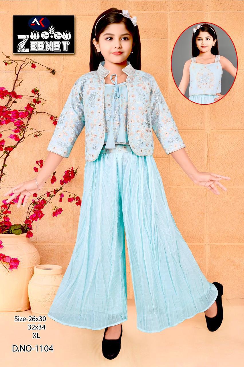 Sky Blue Palazzo Set with Embroidered Jacket for Girls set of 6 pieces
