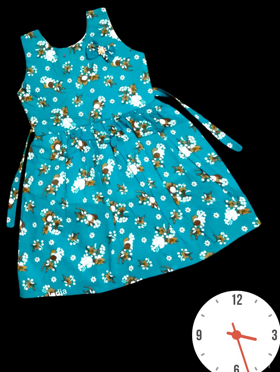 Teal Floral Print Sleeveless Dress for Girls Set Of 6 Pieces