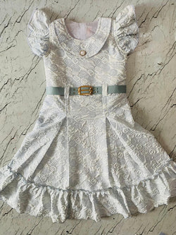 Elegant Jacquard Frock in White and Light Blue set of 6 piece