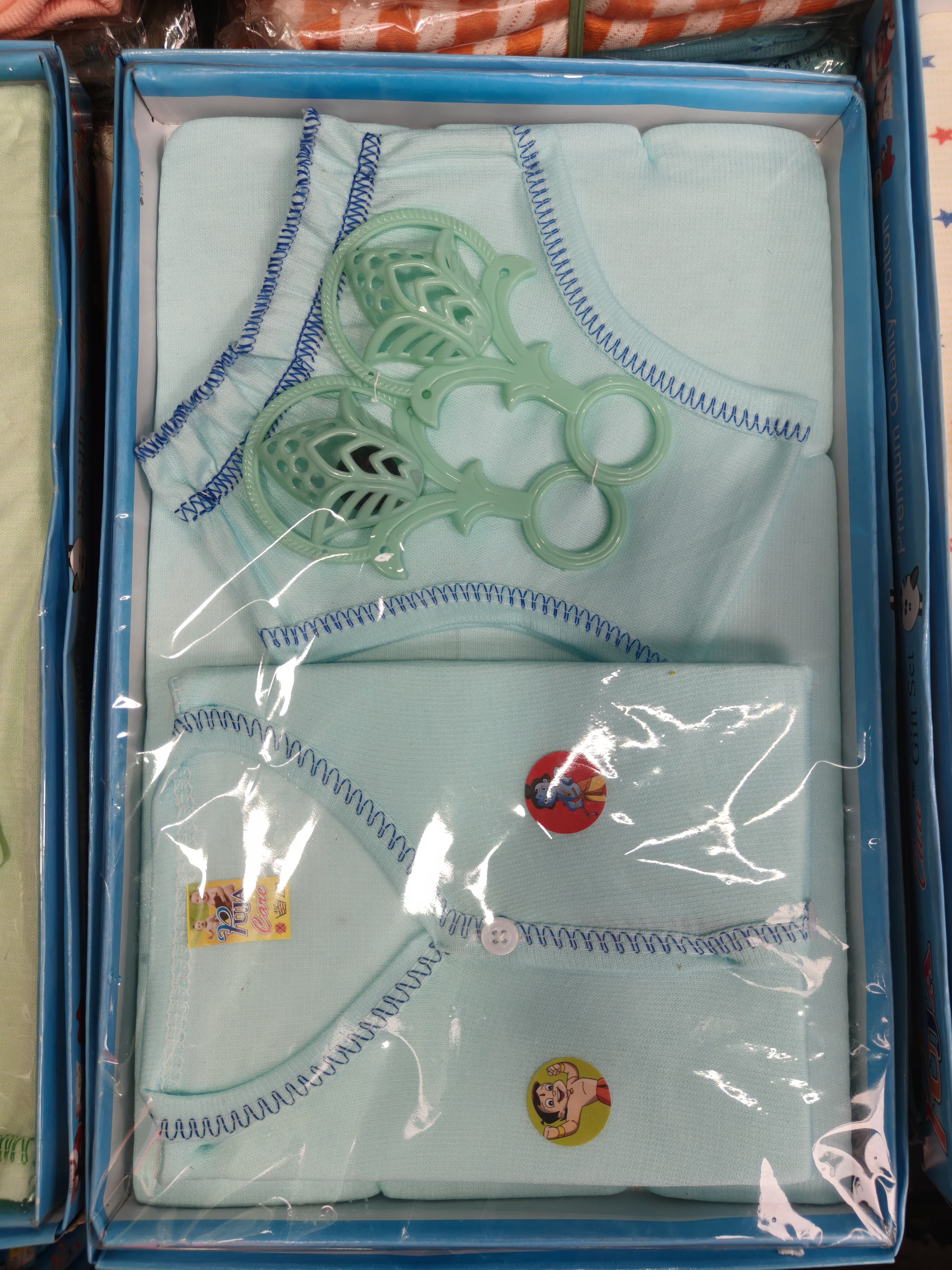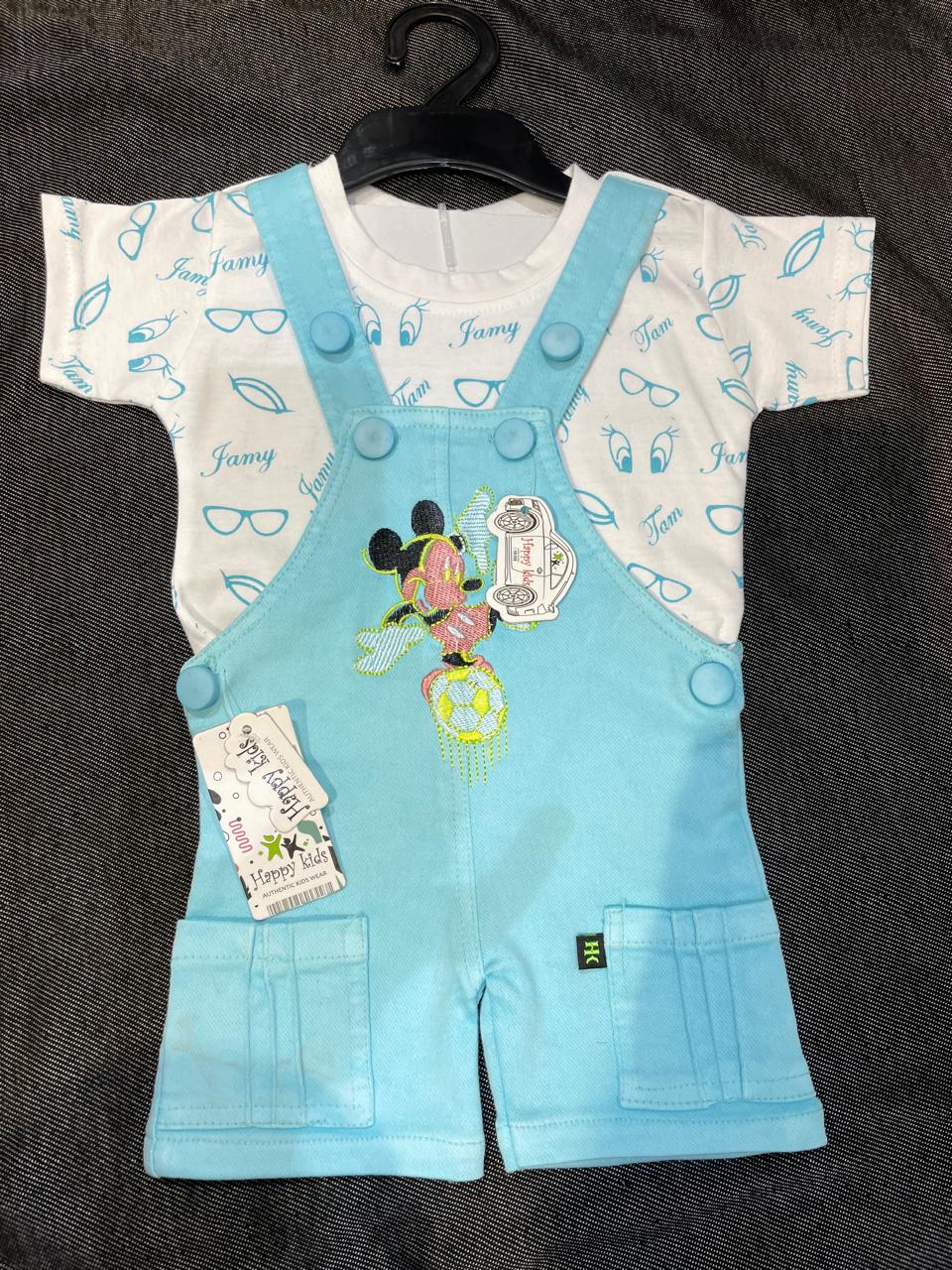 Cartoon Embroidery Baby Blue Dungaree Set of 6 pieces[3 COLOR]