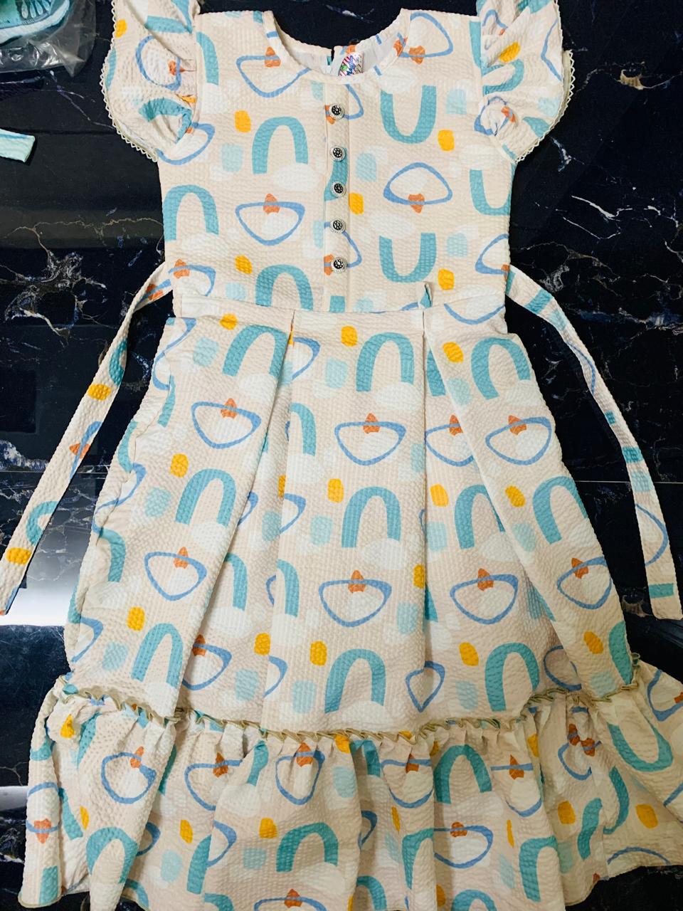 Charming Abstract Print Frock with Tie-Up Belt set of 6 piece