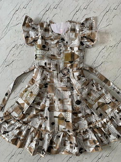 Modern Geometric Print Frock with Belt Detail set of 6 piece