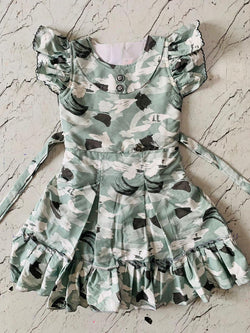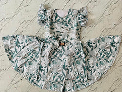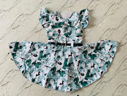 Modern Leafy Print Frock with Bow Detailing set of 6 piece