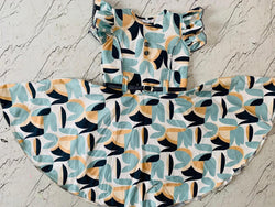 Modern Abstract Print Frock in Blue and Navy set of 6 piece