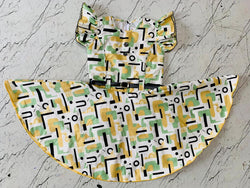 Vibrant Geometric Print Frock with Yellow Trim set of 6 piece