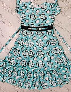 Modern Aqua Green & White Abstract Frock with Black Belt set of 6 piece