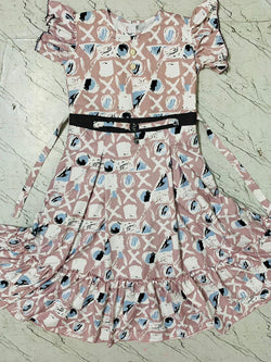 Charming Abstract Print Frock with Tie-Up Belt set of 6 piece
