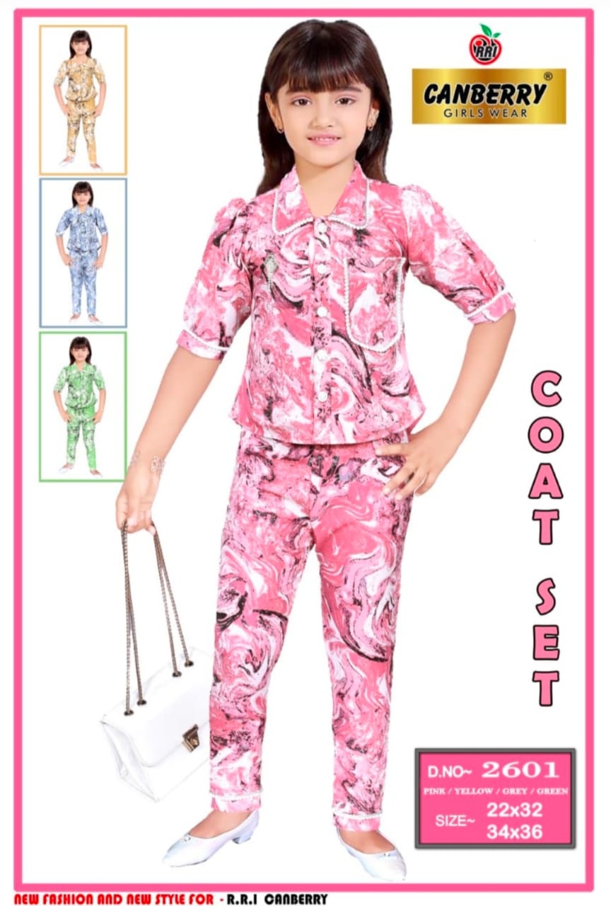 Girls Printed Coat Set Half Sleeve Shirt & Pant Outfit set of 6 pieces
