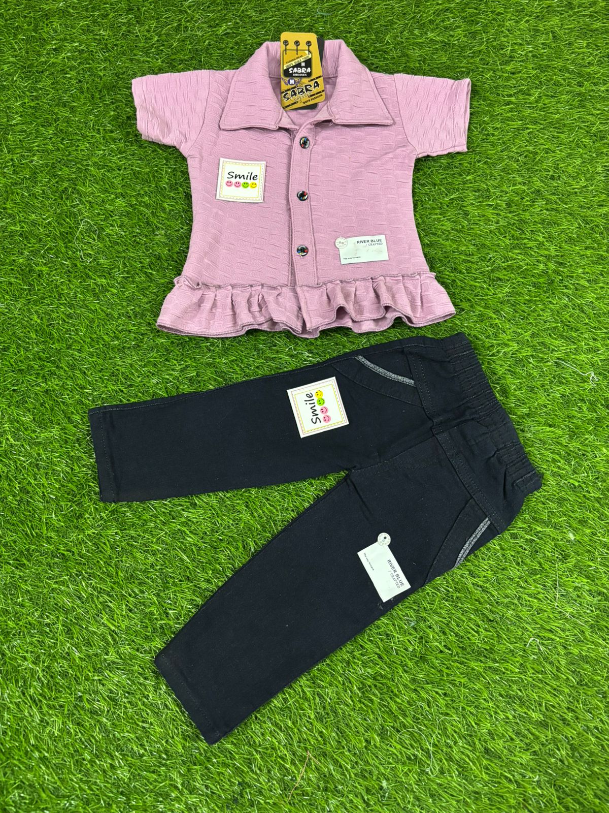 Cute Girls Pink Ruffle Hem Shirt with Black Pant Set Of 6 Pieces[3 COLOR]