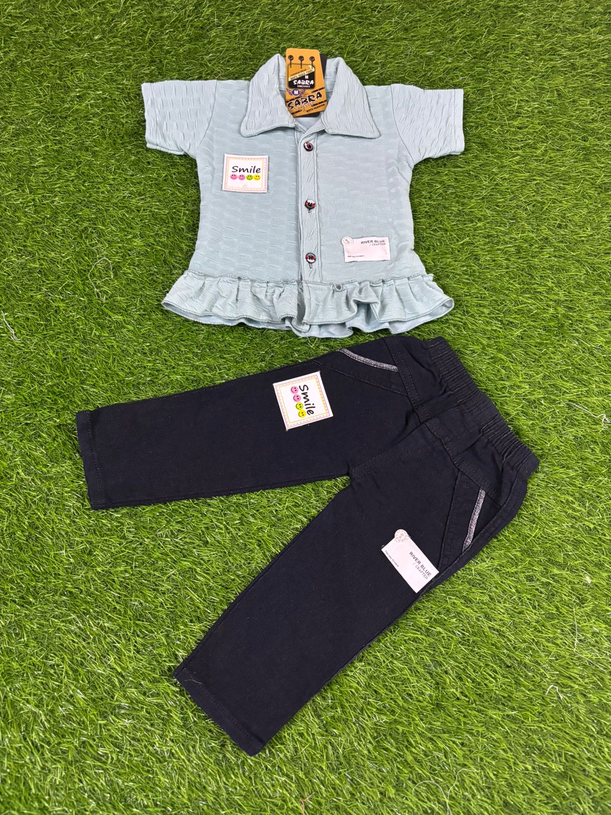 Trendy Girls Mint Green Ruffle Shirt with Black Pant Set Of 6 Pieces[3 COLOR]
