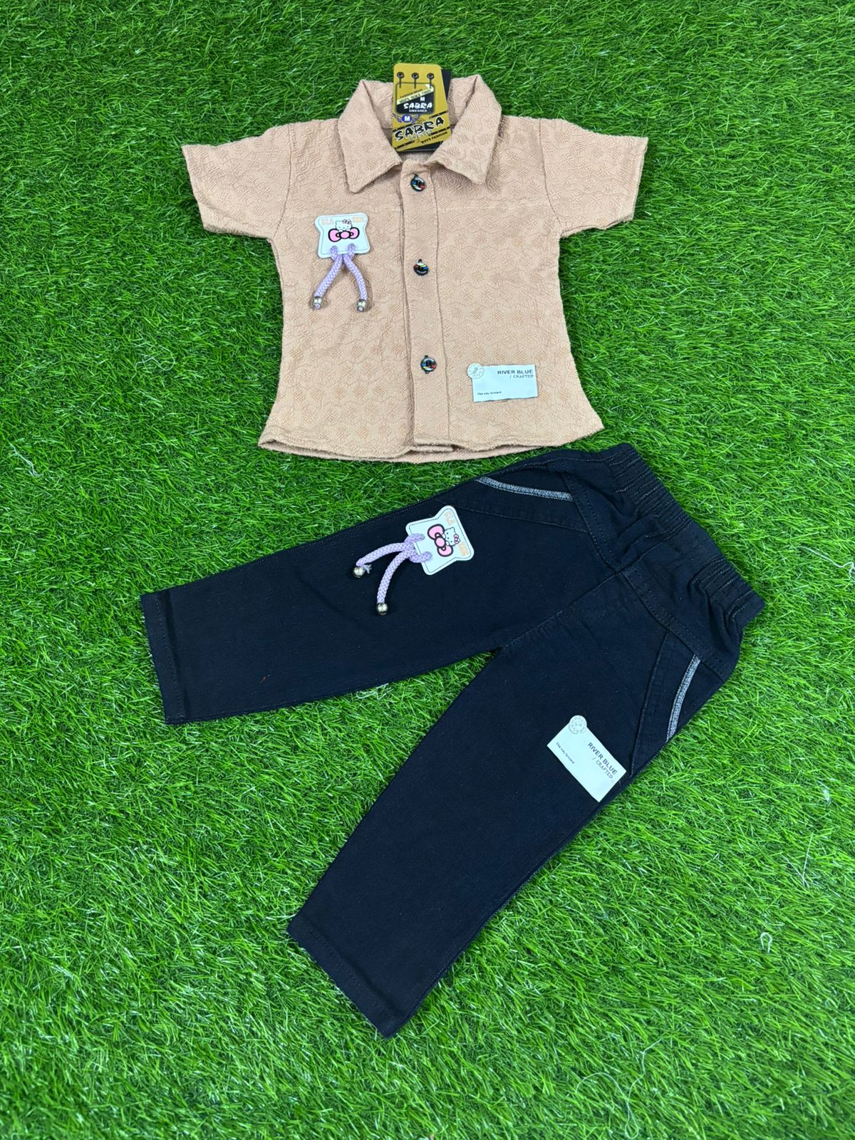 Chic Kids' Brown Embroidered Shirt & Black Pant Set - Stylish Toddler Outfit Set of 6 Pieces[3 COLOR]