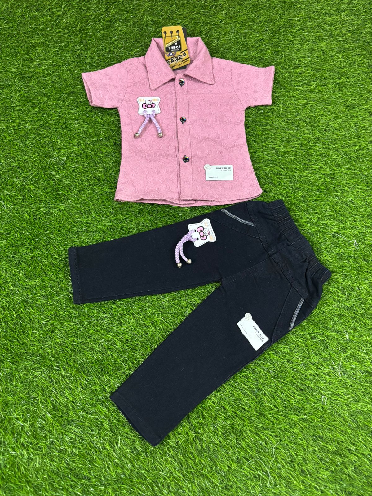 Trendy Kids' Pink Embroidered Collared Shirt with Black Pant Set Of 6 Pieces[3 color]