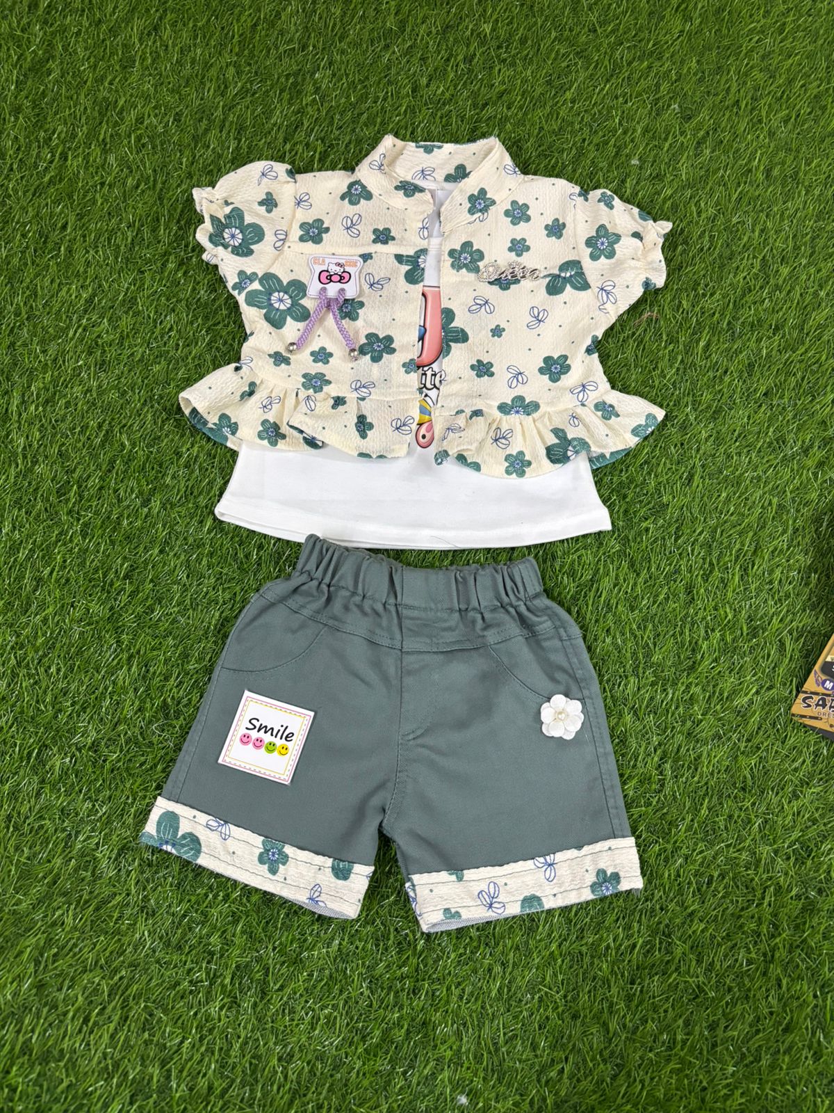 Chic Kids' Floral Ruffle Top and Shorts 3 Piece Set - Toddler Summer Outfit Set Of 6 Pieces[3 COLOR]