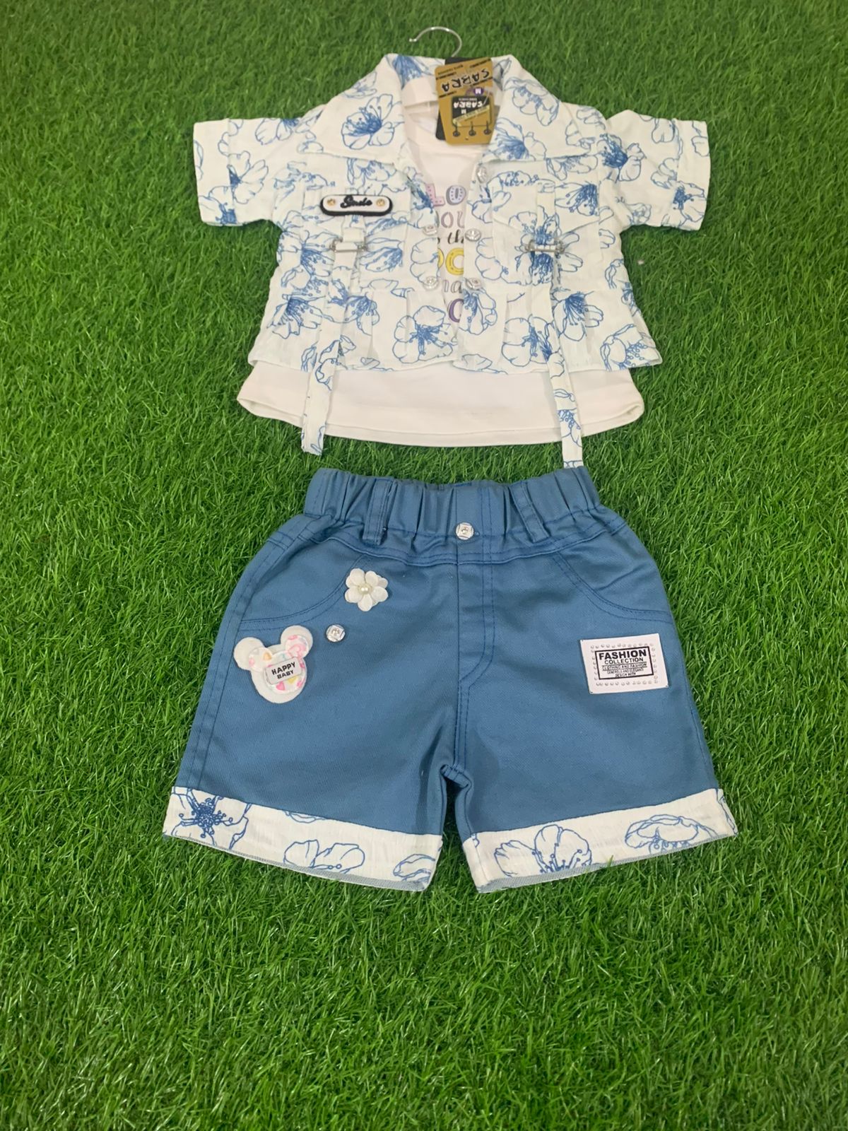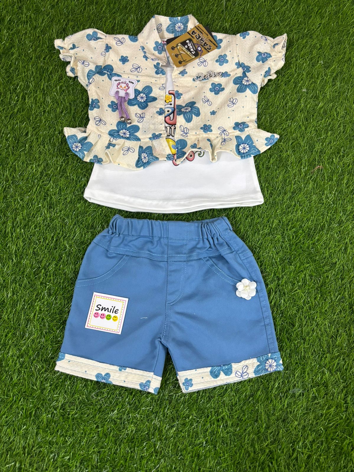 Stylish Girls Blue Floral Printed Top with Matching Blue Pant Set Of 6 Pieces [3 COLOR]