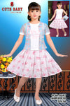 Flared Skirt: White flared skirt featuring pink floral and leaf prints, designed for a twirl-worthy look that girls love.
