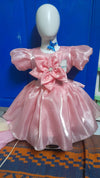 Baby Girl's Pink Organza Party Frock with Large Bow Detail Set of 6 [3 COLOR]