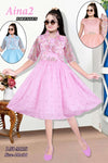 - Description: This beautiful two-piece set is perfect for party wear and special occasions for young girls. The set features a sleeveless, light pink frock with a high neck and a full, flared skirt that is decorated with a subtle print or texture. It is paired with a stylish, short-sleeved shrug made of a sheer, floral-patterned fabric, complete with a high collar and a decorative bow at the front. The set offers a fashionable and coordinated look.
