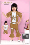 Girls 3-Piece Stylish Brown Jacket, T-Shirt & Flared Pant Set of 6 pieces