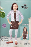 Upgrade your little girl’s fashion game with this Rider Dresses Floral Blazer & Dress Set, blending elegance with comfort. The set includes a chocolate brown ribbed dress, a white printed floral blazer, and matching white leggings with floral detailing at the bottom. The pearl belt and cute bow detail add a charming touch, making it perfect for festive occasions, family gatherings, or casual outings.