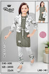 Girls Stylish Jacket Dress Set – Olive Green & White Party Wear Outfit Set Of 6 Pieces[2 COLOR]