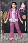 Dress your little fashionista in this Stylish Girls Jacket & Plazo Set, designed to add a chic touch to her wardrobe. This 3-piece outfit includes a floral printed layered top, a smart pink cropped jacket, and matching plazo pants with side pockets for a modern and comfy look. Perfect for parties, festive occasions, or outings, this outfit combines elegance with playful charm.