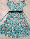Modern Aqua & White Abstract Print Frock with Bold Belt set of 6 piece
