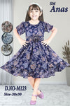 - Description: This beautiful frock is a perfect choice for parties and special occasions. The dress features a vibrant navy blue color with a delicate, all-over floral print. It has short, ruffled sleeves, a cinched and ruffled waistline with a floral embellishment, and a pleated, flared skirt with a ruffled hem, creating a playful and elegant silhouette.