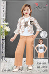 Trendy Girls 3-Piece Casual Co-ord Set – Floral Jacket, Printed Top & Wide-Leg Pants Set of 6 Pieces