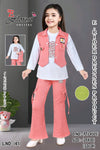 Trendy Girls 3-Piece Co-ord Set – Stylish Jacket, Printed Top & Flared Cargo Pants Set of 6 Pieces[2 COLOR]