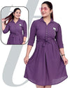 Women's A-Line Purple Polka Dot Shirt Dress with Belt Set of 6 piece