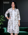 Women's Abstract Print Collared Longline Jacket with Inner Top & Belt Set of 6 piece