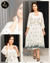 Discover the perfect blend of comfort and chic design with this beautifully crafted ensemble, designed to make you stand out on any occasion. This set features a sophisticated inner A-line dress paired with a stylish, matching open-front jacket, offering versatility and a graceful silhouette.